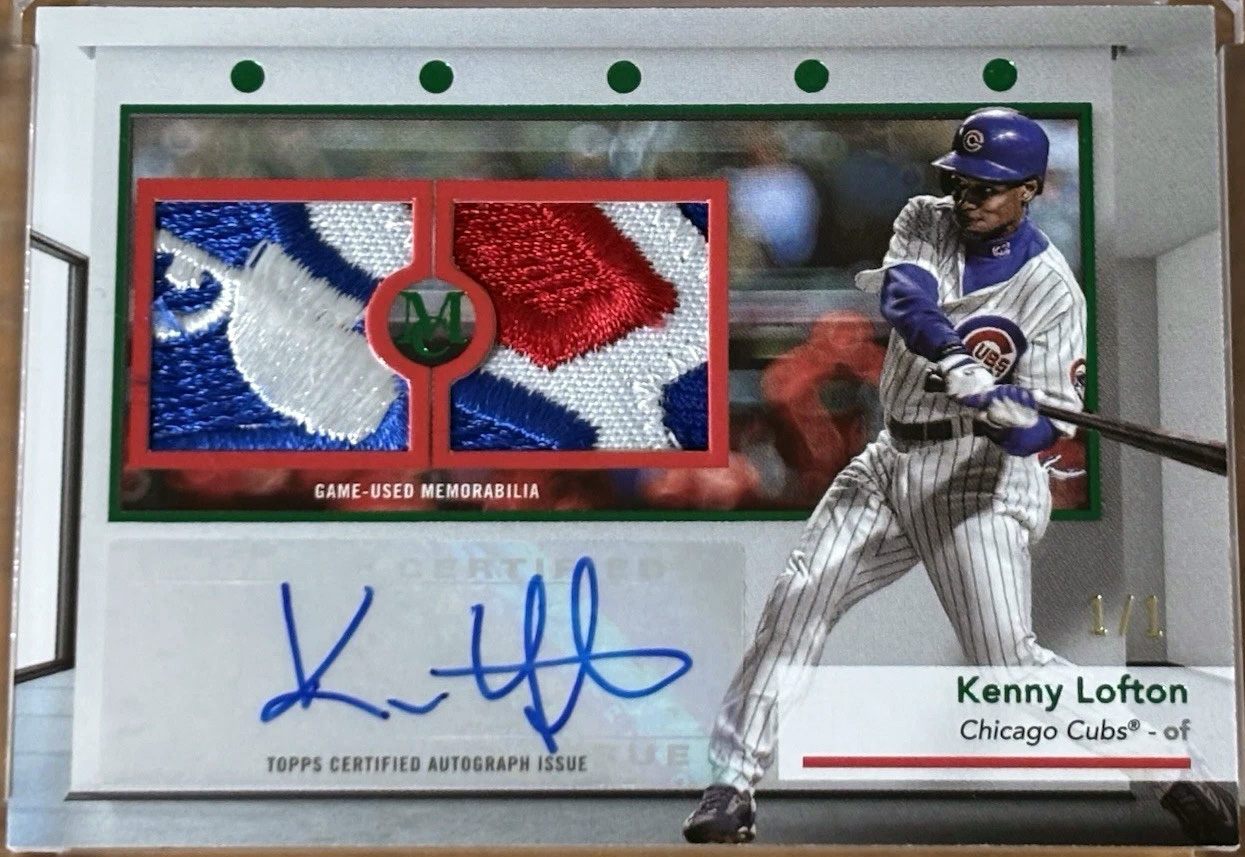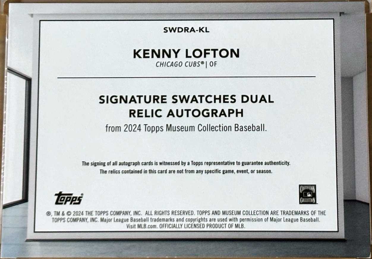2024 Topps Museum Collection Signature Swatches Dual Relic Autographs Emerald #SWDRA-KL Kenny Lofton /1