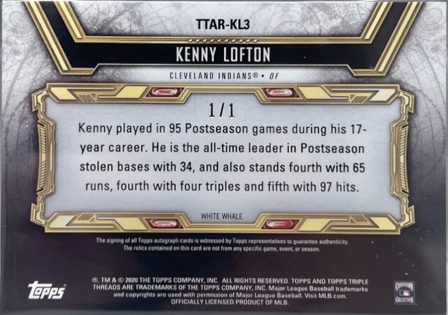 2020 Topps Triple Threads Autograph Relics White Whale #TTARKL3 Kenny Lofton