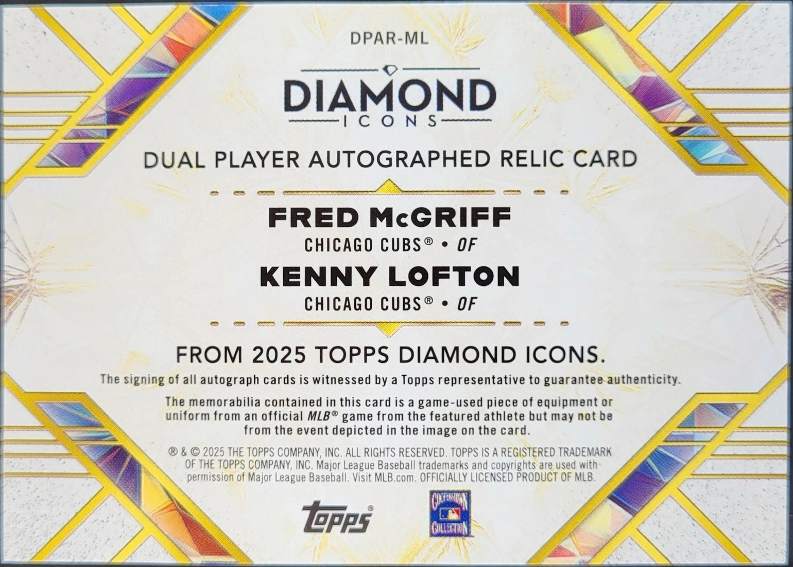 2025 Topps Diamond Icons Dual Player Autograph Relics Gold #DPARML Kenny Lofton/Fred McGriff /1