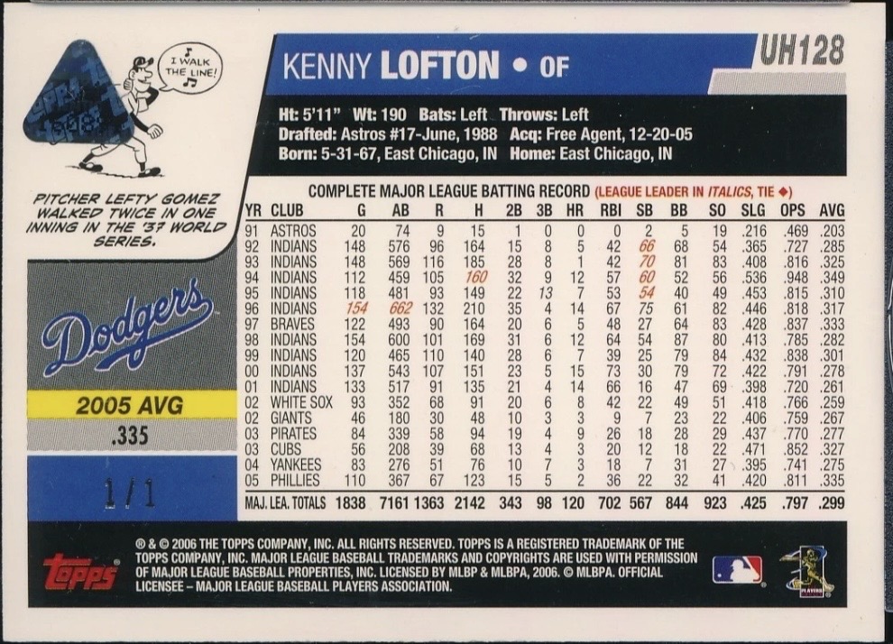 2006 Topps Update Platinum #UH128 Kenny Lofton