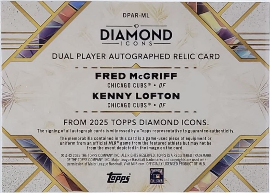 2025 Topps Diamond Icons Dual Player Autograph Relics #DPARML Kenny Lofton/Fred McGriff /25